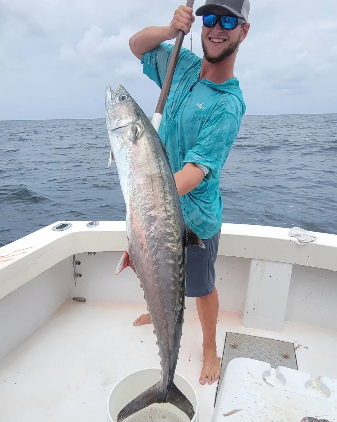 Kingfish are a good eating fish and we fillet them for our customers after every trip. Many of our charters will take their mackerels to Crabby’s Dockside just steps from our slips to have them blackened or fried right then and there. We like to leave the skin on one side and put them in our smoker to make fish spread! Some people shy away from mackerel because it can be oily, but when prepared properly or right away the meat is light and mild and high in Omega-3 fatty acids.